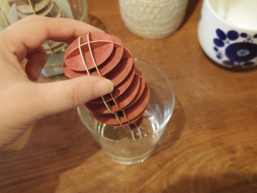 ツリー型のオブジェの足元を水につけて置くだけで、風と周囲の湿度に合わせて穏やかに加湿してくれます。
