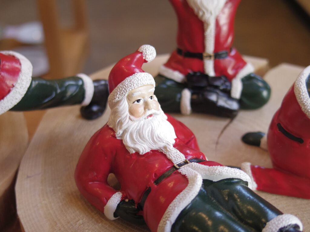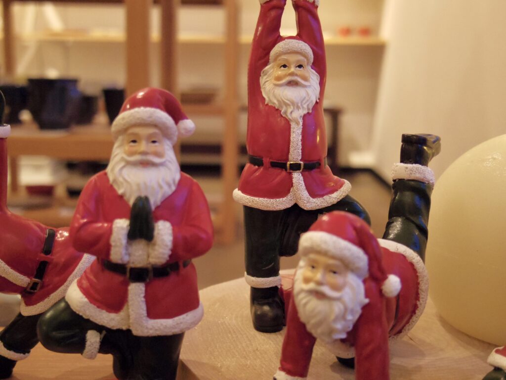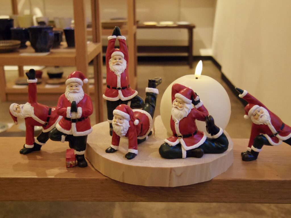投稿日: 2025年11月7日2025年12月18日 投稿者: miageru.【クリスマスのオブジェ展】ヨガサンタ なんともユニークな、ヨガに勤しむサンタクロース。 ちょっとシュールな雰囲気ですが、クスッと笑える可愛らしさ。 絶妙なポージング中でも安定感があります。これはしっかり鍛えてますね。 オンラインストアでも販売しています。 ヨガサンタ各種 ¥1,540