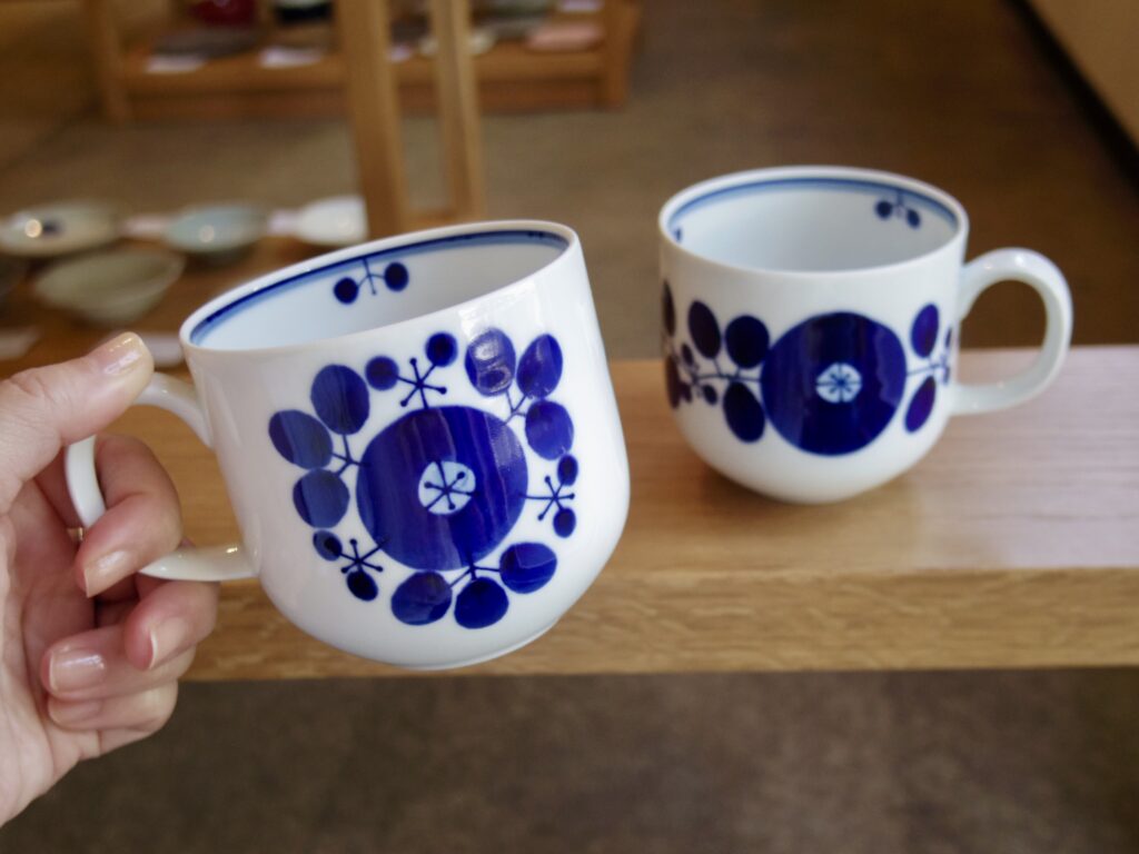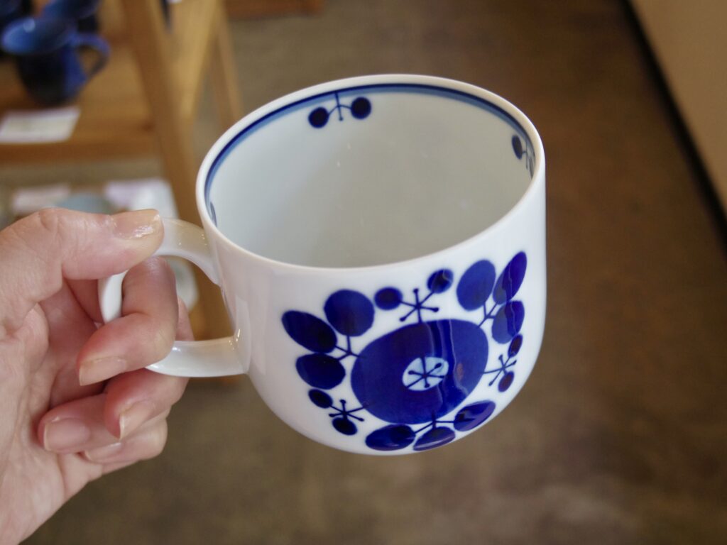 白磁に瑠璃色の花をみずみずしいタッチで手描きした白山陶器の「ブルーム」シリーズ。